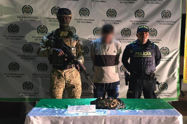 El procedimiento tuvo lugar en la calle 16 con carrera 26, donde los uniformados abordaron a un sujeto de 28 años, para practicarle un registro personal. Durante la inspección, se le halló en su poder una bolsa de color negro que contenía marihuana con un peso aproximado de 500 gramos.