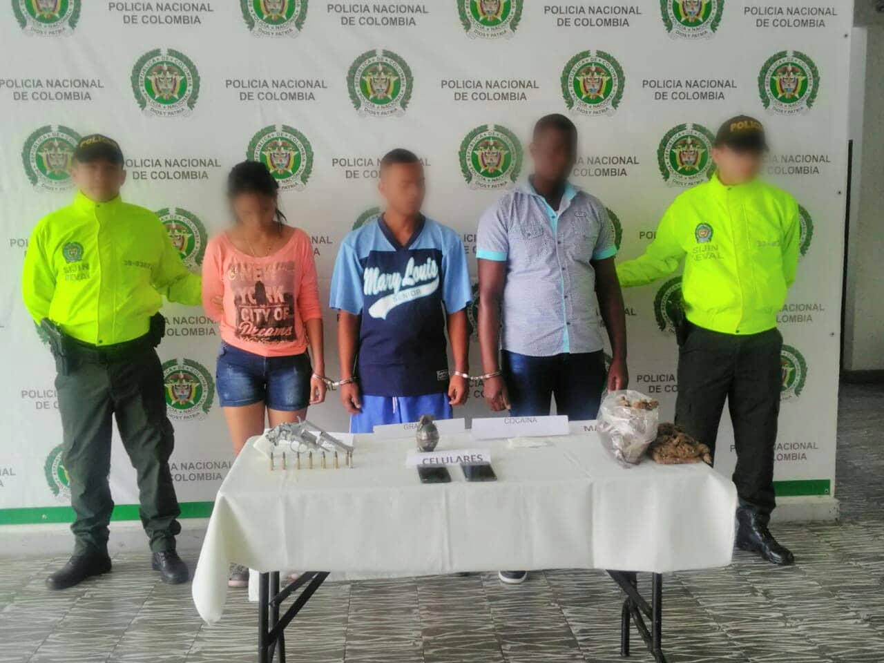 Los capturados fueron puestos a disposición de autoridad competente y en audiencia de control de garantías, les fue impuesta la medida de aseguramiento intramural en centro carcelario y centro de reclusión de menores respectivamente; quienes deberán responder por los delitos de Fabricación, Tráfico, Porte o Tenencia de Armas de Fuego, Accesorios, Partes o Municiones y Trafico Fabricación o Porte de Estupefacientes.