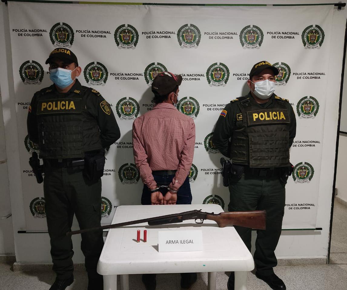 Por lo tanto, se materializó la captura y se incautó el arma de fuego siendo dejados a disposición de la autoridad competente para su audiencia de legalización de captura a la espera de que un juez de la República le defina su situación judicial por el delito de fabricación, tráfico, porte o tenencia de armas de fuego, accesorios, partes o municiones.