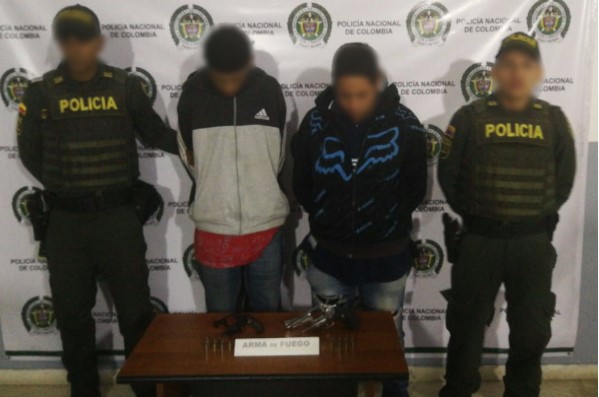 De igual manera, en otro procedimiento desarrollado simultáneamente en el barrio Niquía, la patrulla del Modelo Nacional de Vigilancia Comunitaria por Cuadrantes, aprehendió dos adolescentes de 17 años de edad, a quienes les fueron hallados un revolver marca Llama Martial calibre 38 y una pistola marca Pietro Beretta calibre 9 milímetros. Los antes mencionados mediante denuncia e información ciudadana habrían atentado contra la humanidad de una mujer y un hombre en el sector de Luz del Mundo, quienes presentan heridas por arma de fuego (mujer en rodilla derecha y hombre en brazo y pierna derechos), siendo atendidos de manera pronta en centro hospitalario.