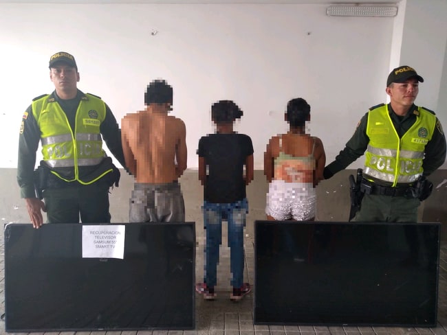 Es así como de inmediato se activa el plan candado con el fin de dar con la localización de estas personas, el cual, gracias a las características brindadas, se realizó patrullajes por los barrios los mangos, cataratas, entre otros, logrando la captura en flagrancia de un sujeto de 21 años, y dos femeninas de 27 y 21 años los cuales se encontraban en un lote baldío ubicado en el barrio resacas, les hallaron los elementos hurtados.