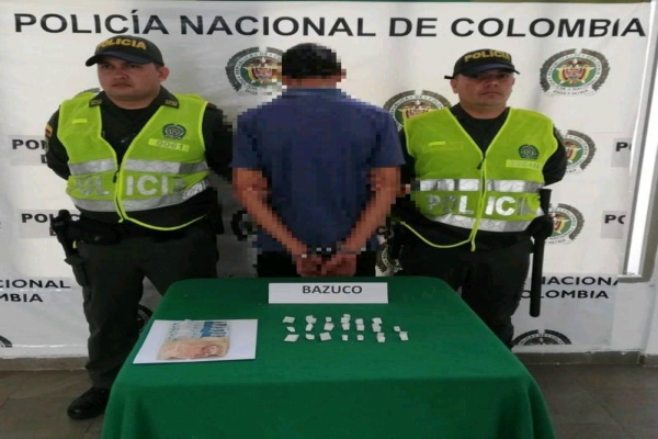 Continuando con los diferentes operativos en contra de la droga y el delito, el departamento de Policía Tolima se permite informar que siendo aproximadamente las 09:30 de la tarde, momentos en que personal del cuadrante realizaba patrullaje de rutina por la calle 14 sector plaza de mercado del municipio del Guamo, logran la captura en flagrancia de un sujeto de 18 años a quien mediante registro a personas se le hallo en su poder 6.9 gramos de bazuco equivalentes a cerca de 25 dosis y 20 mil pesos en efectivo.