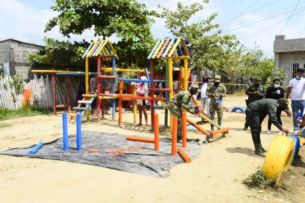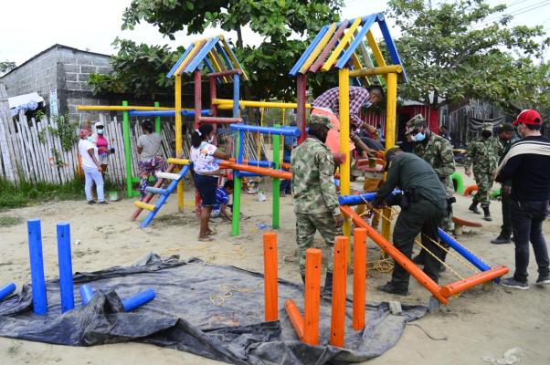 Con el apoyo del Ejército, la alcaldía y la comunidad adecuamos un parque abandonado en el municipio de Achí