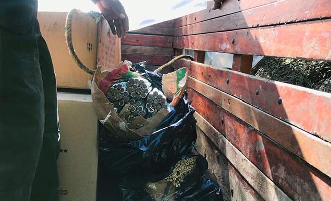 Un primer procedimiento policial, fue adelanto por nuestra Seccional de Tránsito y Transportes, donde incautamos 300 kilos de pólvora, que infringiendo el Decreto presidencial 4481 de 2006 y sin los permisos por parte de las autoridades competentes, eran transportados en la carrocería de una camioneta que cubría la ruta Villavicencio - Granada, la cual fue interceptada en el sector Marayal del municipio de San Martín.
