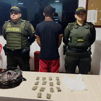 El hecho se presentó en la calle 32 con avenida 1, allí, los policías detuvieron al hombre y al practicarle un registro a persona, en su poder tenía una bolsa blanca que contenía 14 bolsas plásticas de sello hermético, con una sustancia vegetal que por su olor y apariencia se asemeja a la marihuana con un peso de 111 gramos listas para ser comercializadas.