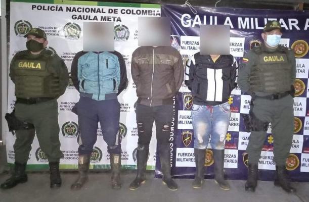 Gracias a la sinergia interinstitucional entre la Unidad Móvil Antisecuestro UMA Gaula de la Policía, la Seccional de Inteligencia y efectivos de Gaula Militar del Ejército Nacional, se logró materializar la captura de tres hombres de 22, 27 y 29 años de edad, en el sector del cruce Casibare ubicado sobre la vía nacional, jurisdicción de Puerto Lleras.