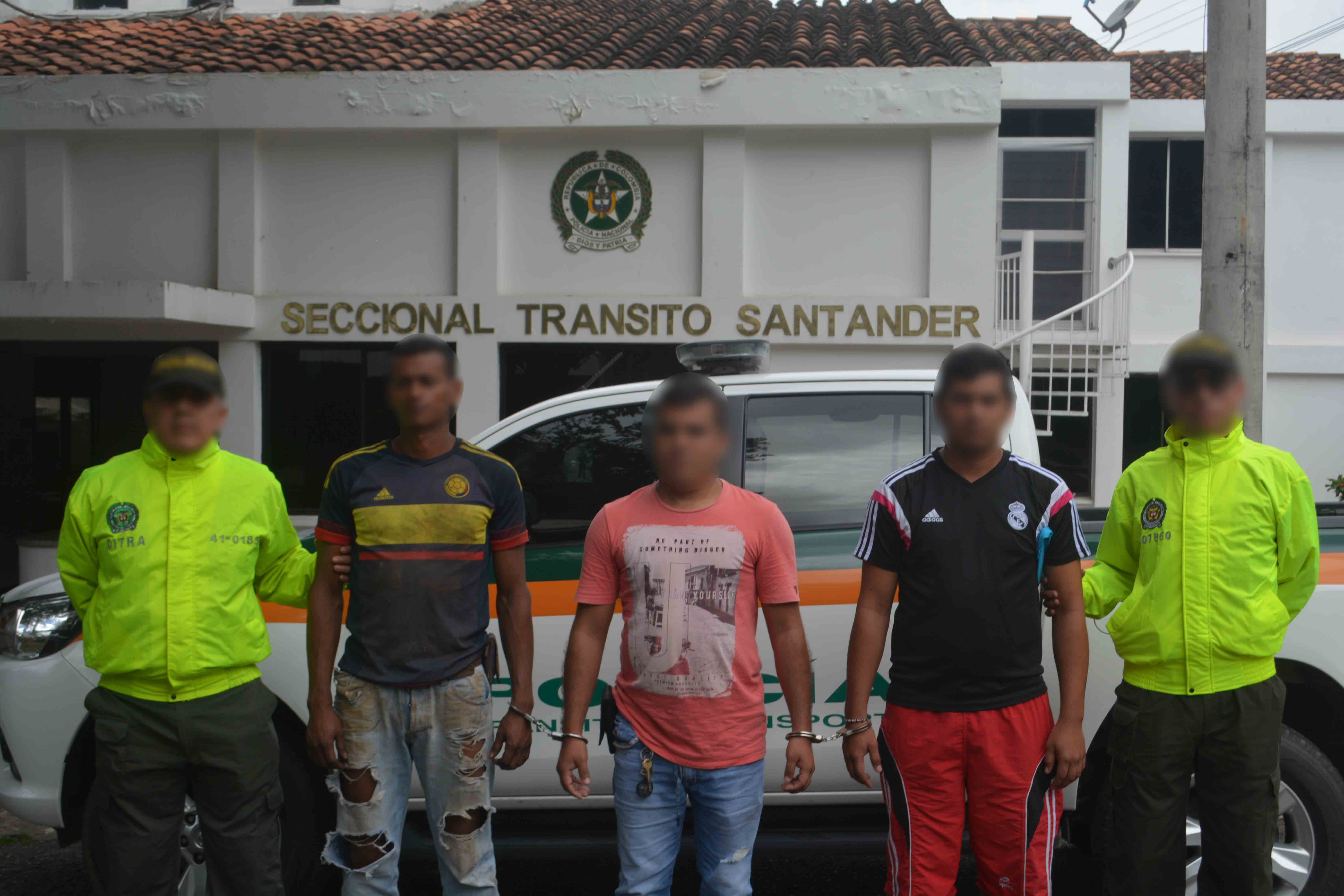 En el marco del plan choque 100 días ‘el que la hace la paga’ de la Presidencia de la República y la estrategia de la Policía Nacional #SeguridadConLegalidad, el Departamento de Policía Santander a través de la Seccional de Seccional de Tránsito y Transporte, logró la captura de tres sujetos y con ello la desarticulación del grupo de delincuencia común organizada denominada “los purinos”, los cuales se dedicaban al hurto de mercancías de suministro mediante la modalidad de piratería terrestre en la vía nacional que de Bucaramanga conduce al municipio de San Alberto en el lugar conocido la cuesta del diablo.