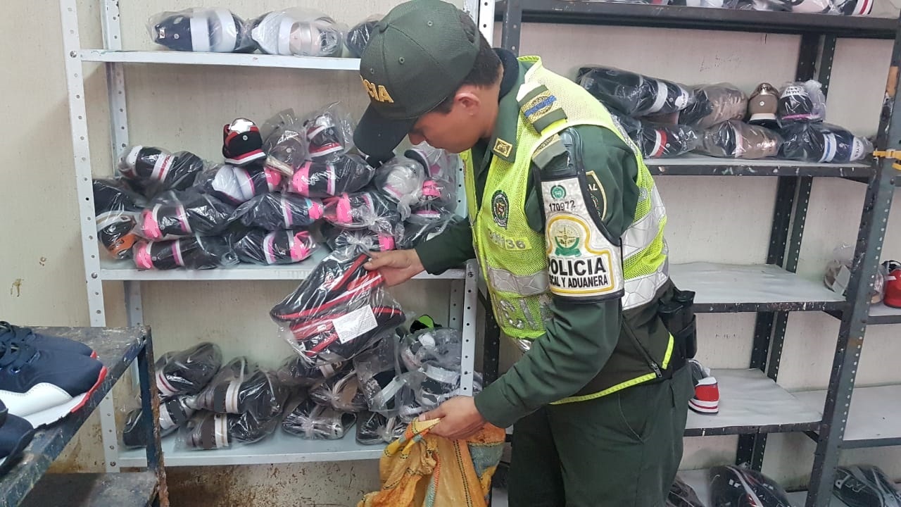 Mediante acciones de prevención y control aduanero adelantadas por funcionarios adscritos a la POLFA y DIAN, en el centro de la ciudad de Bucaramanga, se logró intervenir una fábrica clandestina en donde elaboraban de forma irregular calzado utilizando los logos de reconocidas marcas registradas. Es de anotar, que una vez realizado el dictamen por parte de los peritos representantes de estas marcas, se logró evidenciar que tanto el material utilizado y la manufacturación de estos artículos no correspondían a las características del producto original.