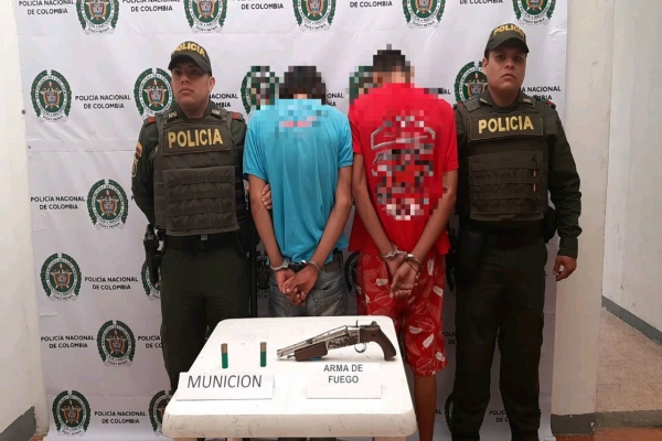 Es así como de inmediato se activa un plan candado de búsqueda y localización donde al momento de llegar al lugar de los hechos, se logró la captura en flagrancia de dos sujetos de 19 y 21 años de edad, uno de estos con las características aportadas por el ciudadano, a quienes se les hallo en su poder un arma de fuego tipo changón calibre 12 con dos cartuchos para el mismo, sin permiso para porte o tenencia.
