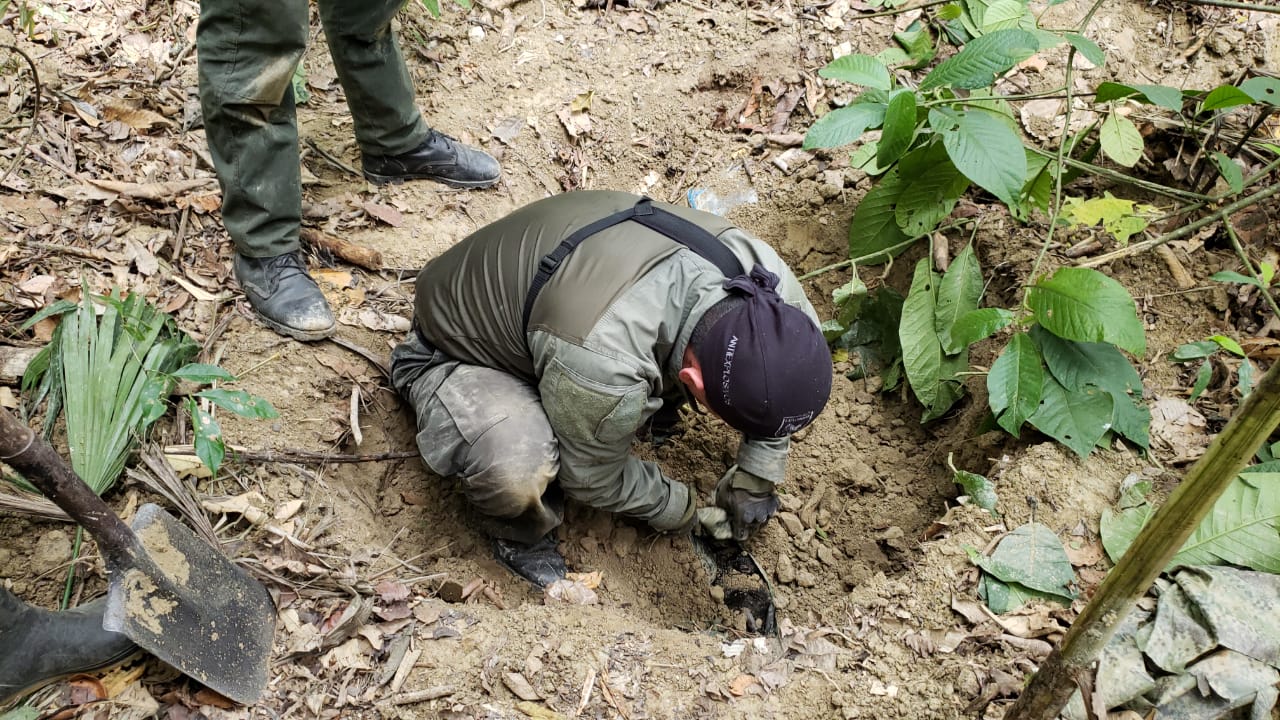 La Policía Nacional en coordinación con la Fuerza de Tarea Conjunta Omega a través de las tropas de la Armada Nacional y el Ejército Nacional lograron la ubicación y destrucción de más de una tonelada de explosivos.