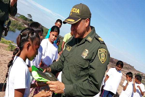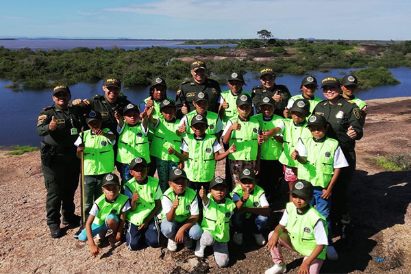 Un grupo de 20 niños entre ellos Sikuani y Amorua, quienes fueron vinculados en un proyecto liderado por la Patrullera Nieves Maria Navarro Mejía, Gestora de Participación Ciudadana de la Policía Nacional, participaron de la ceremonia de graduación como Policías Cívicos Indígenas.