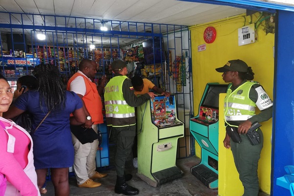 En desarrollo del Plan de Choque, fase cuatro “construyendo seguridad,” la Policía Nacional cumpliendo su deber institucional de velar por el sano esparcimiento de los niños, niñas y adolescentes, adelantó una amplia intervención a tiendas y locales comerciales de Quibdó, realizando la incautación de cinco máquinas tragamonedas en el barrio Kenenedy de Quibdó, ya que sus propietarios no contaban con los permisos para explotarlos comercialmente, afectando la salud y la educación de los chocoanos porque no contribuían al erario.