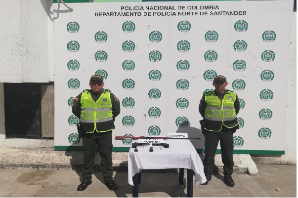 En un operativo de control y prevención realizado en el sector ‘el Mercado’, personal del Modelo Nacional de Vigilancia Comunitaria por Cuadrantes, capturó en flagrancia a una persona de 61 años de edad, natural de ábrego, quien al momento del registro se le halló en su poder 2 escopetas de fabricación artesanal, calibre 22mm y calibre 16mm, sin permiso para porte o tenencia. El capturado y las armas de fuego fueron dejados a disposición de la Fiscalía Seccional de Ocaña para su respectiva judicialización por el delito de Fabricación, tráfico y porte de arma de fuego y munición.
