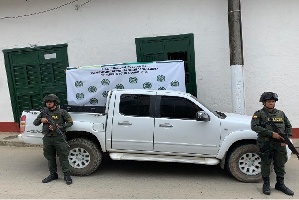 Un segundo resultado se efectuó en el barrio la primavera, sector conocido como la Cadena del municipio de Convención donde se recuperó una camioneta Mazda modelo 2013, de color blanco, avaluada en 50 millones de pesos, la cual fue hallada en estado de abandono y al ser verificada se pudo constatar que tenía una denuncia por hurto interpuesta ante la Fiscalía Primera de Ocaña, autoridad ante la cual los uniformados de la Estación de Convención la dejaron a buen recaudo.