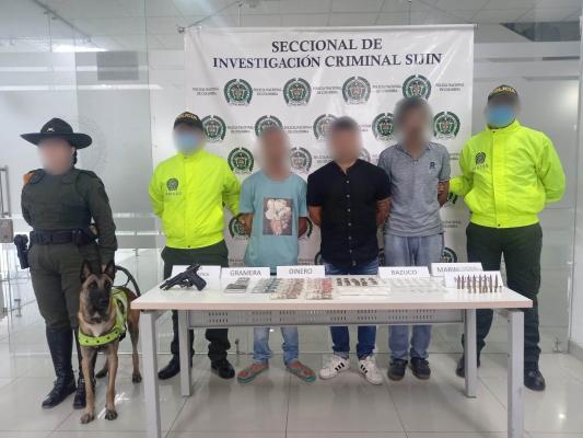 Los capturados y los elementos incautados fueron trasladados a las instalaciones de la Unidad de Reacción Inmediata (URI) de la Fiscalía y posteriormente dejados a disposición de la autoridad competente, para que respondan por los delitos de tráfico, fabricación o porte de estupefacientes y fabricación, tráfico, porte o tenencia de armas de fuego, accesorios, partes o municiones.