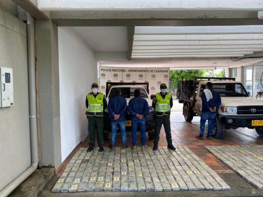 Ante esta importante información, la Policía Nacional planeó el operativo e instaló un puesto de control en la vía el Porvenir Kilómetro 49 a la altura del municipio de Monterey en el departamento de Casanare, allí fueron interceptadas dichas camionetas y después de varias horas de inspección por parte de los uniformados se logró detectar la droga en las caletas, hallando 412 paquetes rectangulares de cocaína de alta pureza, conocida en el mundo criminal como ‘HH o High High’, que por su alta concentración de alcaloide es muy apetecida en los mercados negros de Europa.
