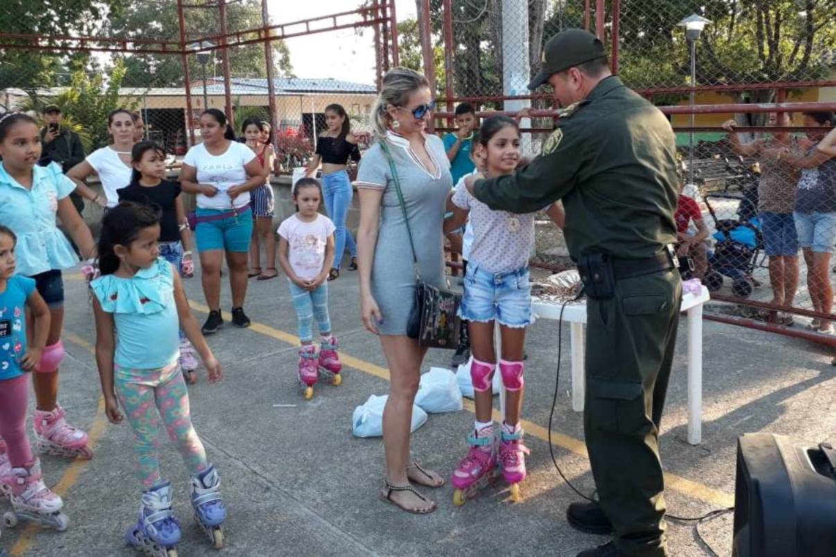 Con el fin de generar espacios de convivencia, buen uso del tiempo libre e inculcar al amor por el deporte, el señor Intendente Fredy Sánchez, comandante de la Subestación Los Ángeles, en el corregimiento del mismo nombre, en jurisdicción del municipio de Rio de Oro, recogió inquietudes de padres de familia y resolvieron organizar un campeonato de patinaje dirigido a niñas, entre los 6 y los 12 años de edad.