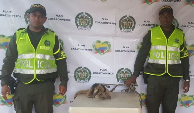 En otro procedimiento unidades policiales de la Seccional de Tránsito y Transporte, que se encontraban realizando patrullaje en la vía Planeta Rica Sincelejo lograron la recuperación de un oso hormiguero, nombre científico myrmecopnaga tridactyla, es de resaltar que este oso hormiguero estaba siendo agredido por varios jóvenes que al momento de observar la patrulla emprenden la huida del lugar dejando abandonado este animal, el cual fue recogido por la patrulla y posteriormente fue dejado a disposición de la corporación de los Valles del Sinú y San Jorge CVS Sahagún. Esta animal tiene un valor ecológico de $2.602.200.