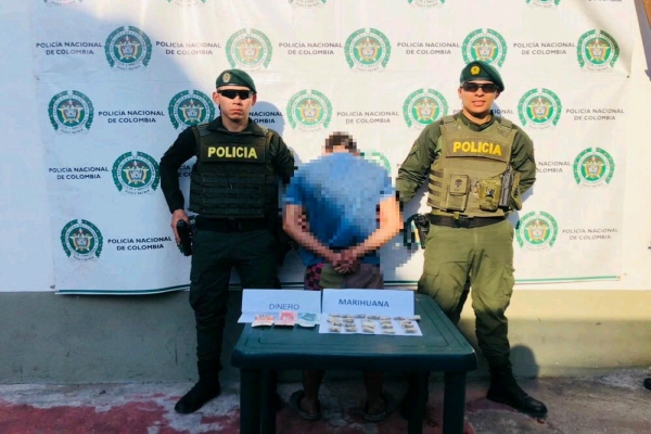 En atención a la estrategia integral contra la venta y consumo de estupefacientes, el departamento de Policía Tolima se permite informar que siendo aproximadamente las 03:35 de la tarde, momentos en que personal del grupo de reacción disponible elite realizaba patrullaje por el barrio la invasión los pinos del municipio de Mariquita, se logra la captura en flagrancia de un sujeto de 20 años, a quien mediante registro a personas se le hallaron en su poder 62 gramos de marihuana, equivalentes a cerca de 120 dosis.