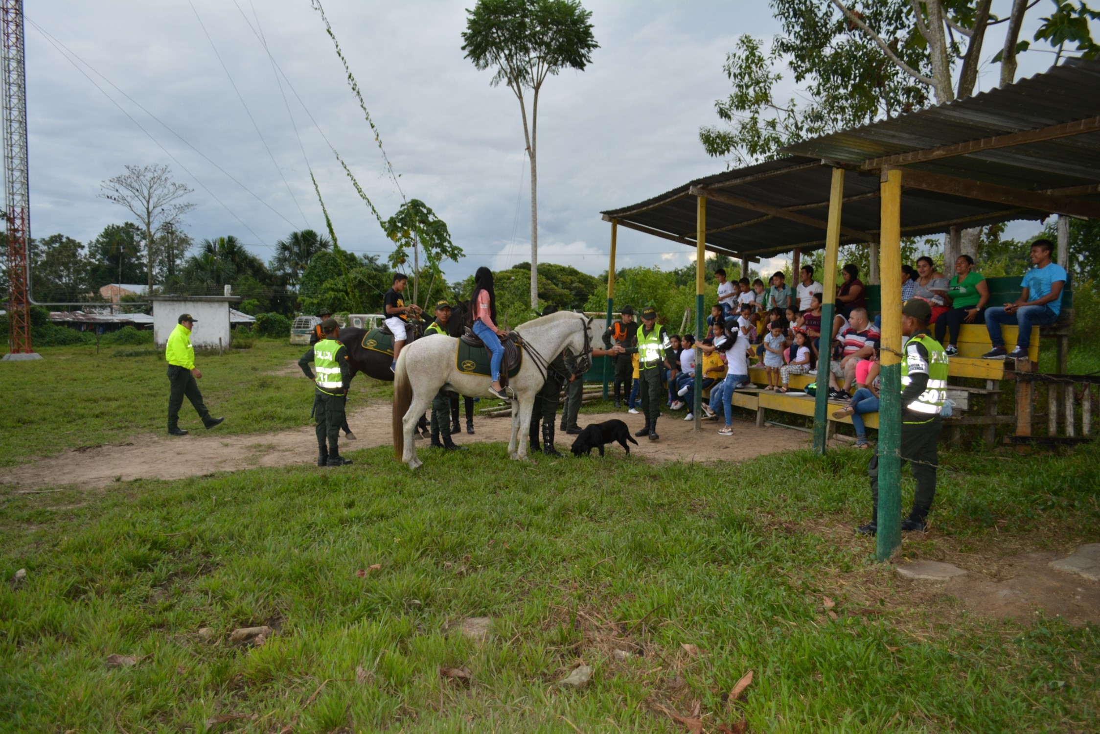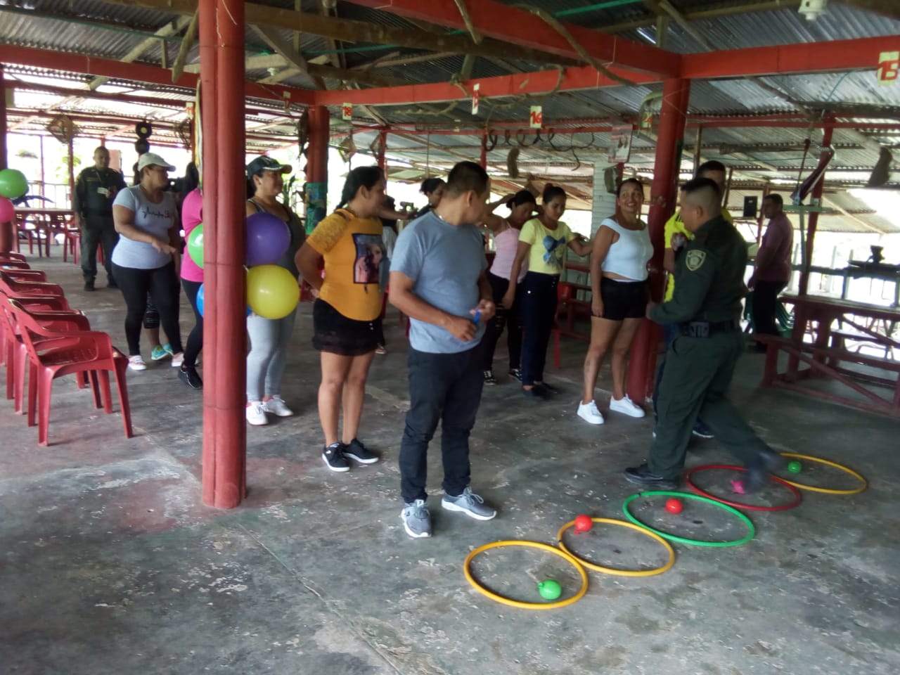 El grupo de carabineros comparte con los niños y niñas tarde dinámica