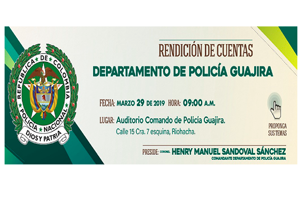 El Departamento de Policía Guajira realizará rendición de cuentas vigencia 2018
